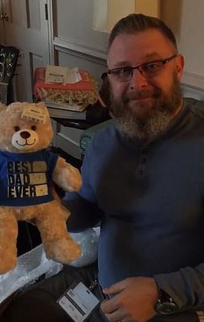 The shirt of the teddy bear has the note written that John was the best father.