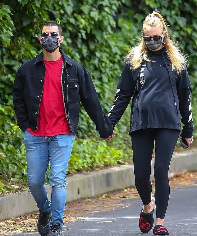 Sophie Turner was spotted talking a walk with her husband Joe Jonas and displaying her big baby bump during self-isolation.