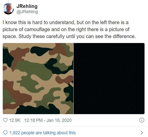 After the Space Force shared their new design with the world on Twitter, critics were quick to point out that this isn’t how camouflage works and that pitch-black suits would be better for use in space than standard green and brown army camo.