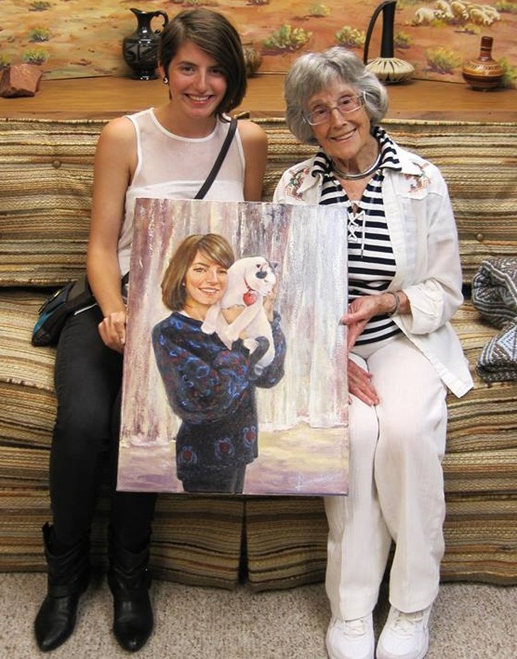 - This 92 years old Grandma painted a picture of her granddaughter holding her cat.