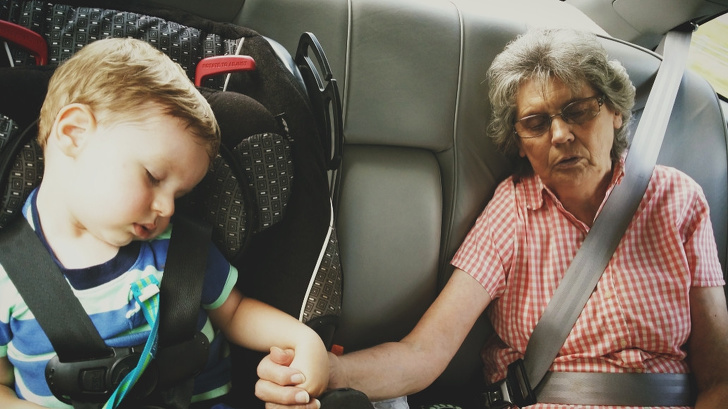 - This Grandma and nephew fell asleep in the back seat of the car while holding hands.