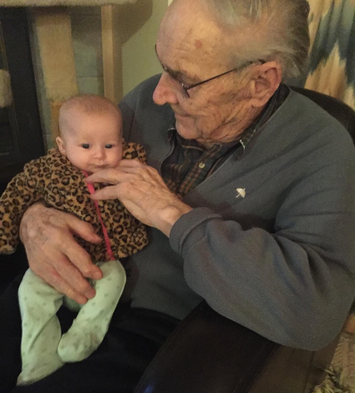 ADVERTISEMENT IMGUR - Here is an adorable picture of 93-year-old great-grandpa with his adorable 3-month-old great-granddaughter.
