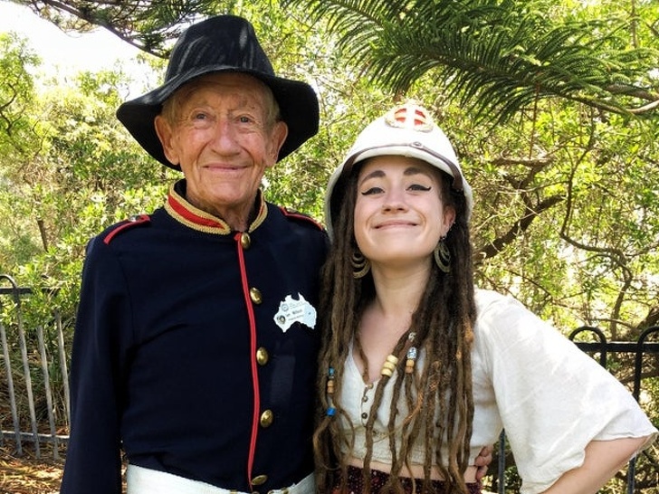 - This grandfather switched hats with her granddaughter because he wanted to look cool like her.