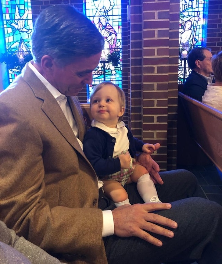 - David Gilmour, the member of popular band Pink Floyd, spending some quality time with his grandkid.