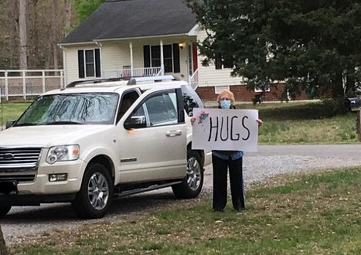 ADVERTISEMENT And, thirty minutes later, she rolled up to his driveway giving distanced hugs and asking whether or not he was hungry.