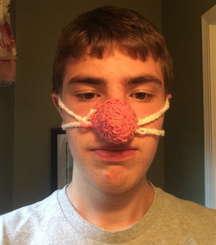 ADVERTISEMENT REDDIT - His 94-year old grandmother weaved a woolen nose covering for him because she felt it was cold outside. Apparently, it was 80-degree Fahrenheit.