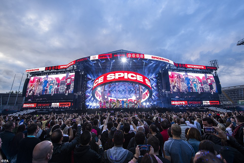 A third also tweeted: ‘There’s something wrong when the crowd at @spicegirls concert are all sitting down because no one has a clue what song is on because the sound really is THAT bad.’