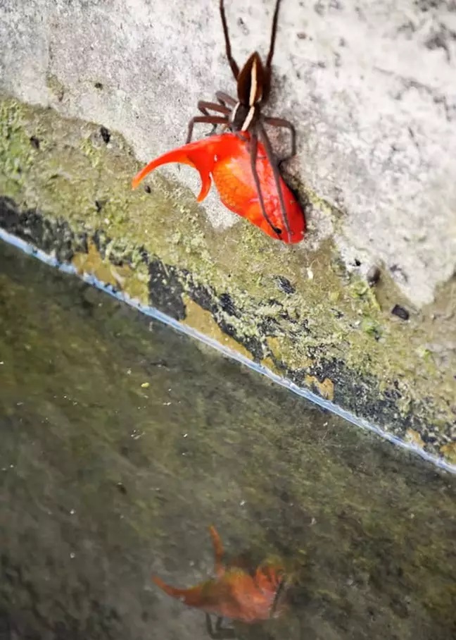 “I could see the spider catching the fish and it had taken it out of the water. The spider can fish if there’s grass or a branch above the water, but this was a vertical concrete pond.