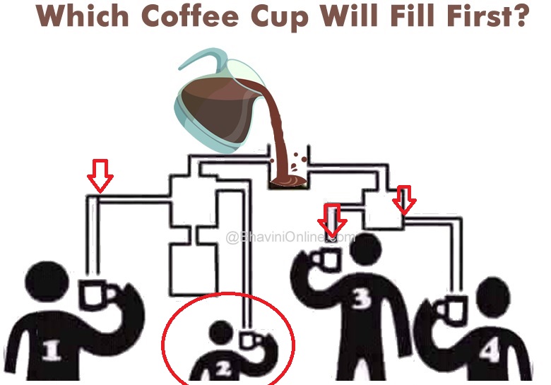 If you’re sure you got the right answer, here’s a hint that might change your mind. Three of the pipes are blocked which is why coffee can only reach one of the cups in the picture!