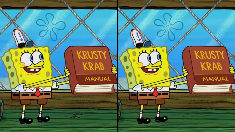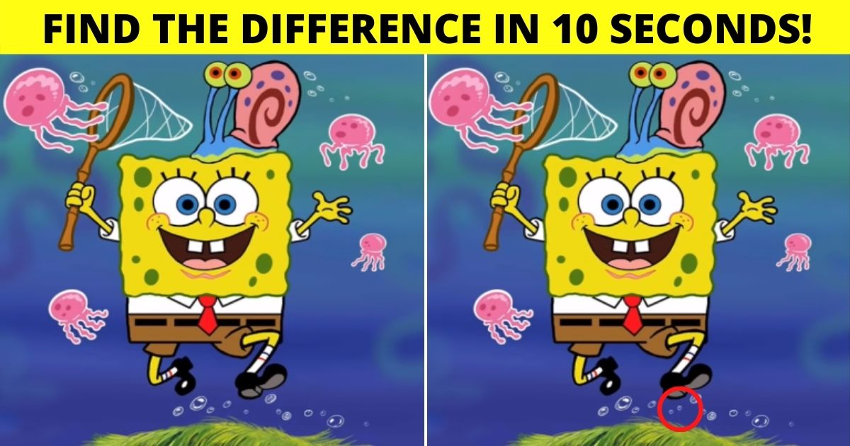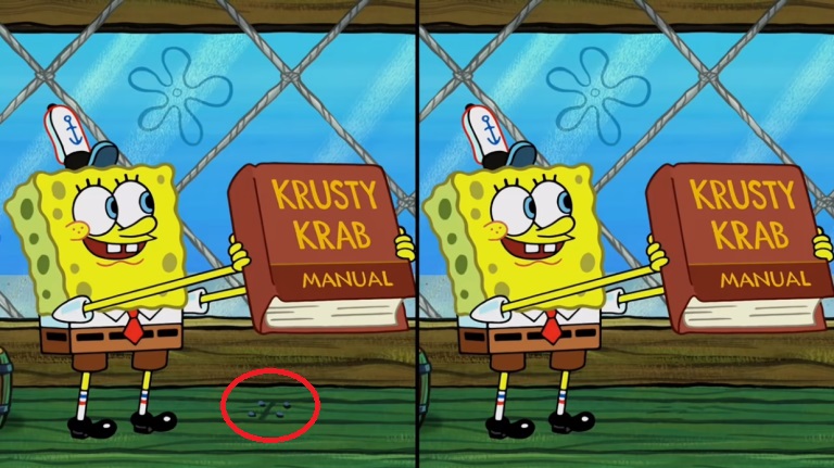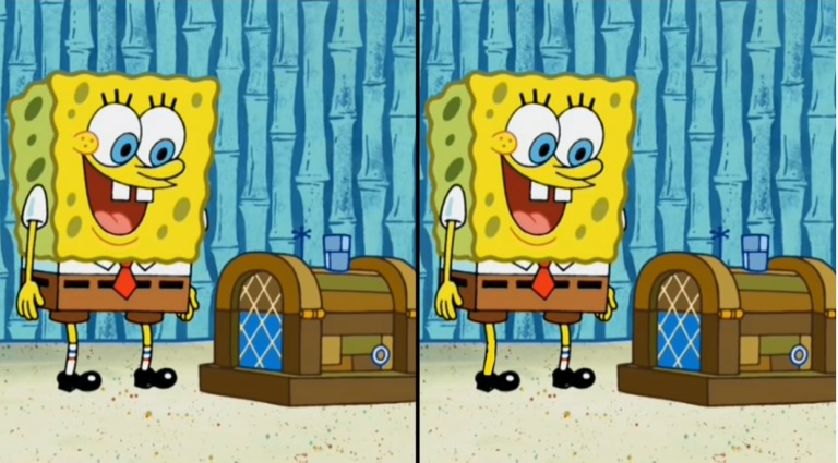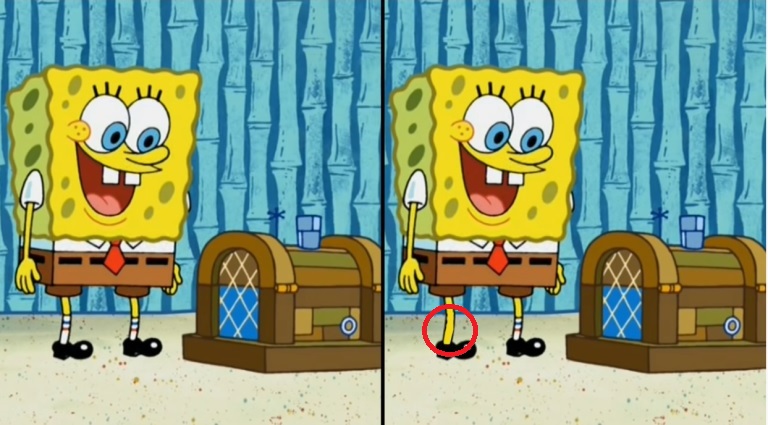 Like before, there is only one difference between the two pictures above. Focus on SpongeBob to solve the mystery!