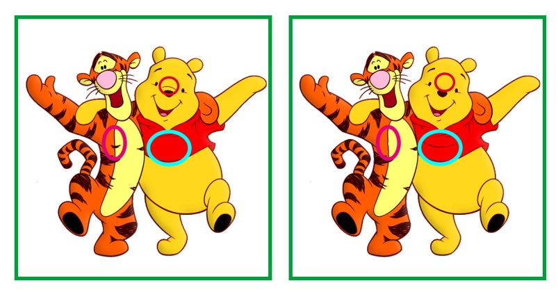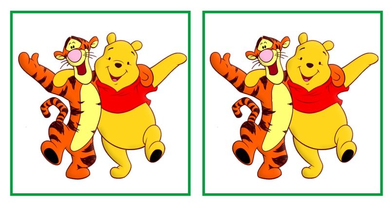 Your task this time is to take a close look at the picture of Winnie the Pooh and Tigger and see if you can spot the difference between the pic on the left and the one on the right.