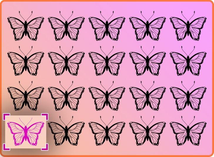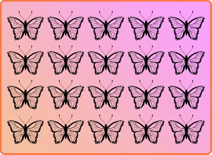 While all of the icons appear the same at the first glance, one of them is slightly different. But can you spot the detail that sets the different butterfly apart from the rest?