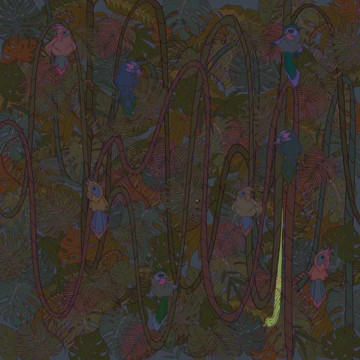 Can you find the hidden snake among the vines and birds?