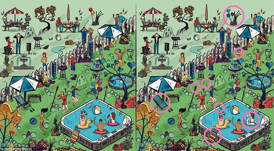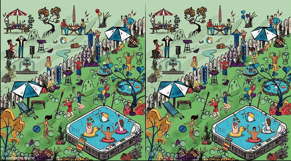 The ‘spot the differences’ graphic was created by UK-based company HotSpring World, and it asked the challengers to spot all eight differences between the party photos.