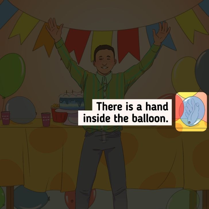 Remember, something in that image made the visitors run for the door. And that thing is hiding in one of the balloons!