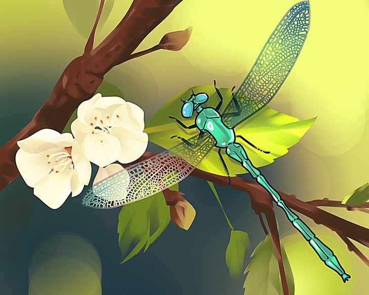 This time, you can’t see much more than a beautiful dragonfly resting on a leaf on top of a tree. Somewhere in the graphic, however, there’s a big error.