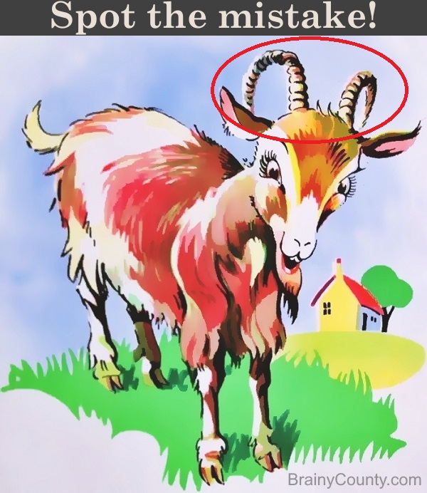 To spot the error, focus on the goat’s head – or should we say what’s on its head?