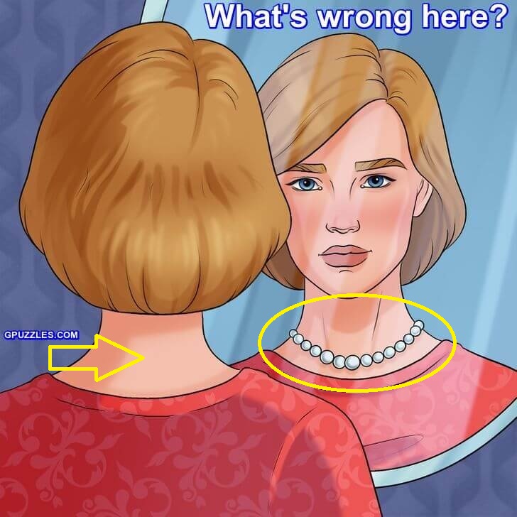 As you can see, the reflection in the mirror is showing a pearl necklace even though the lady isn’t wearing one!