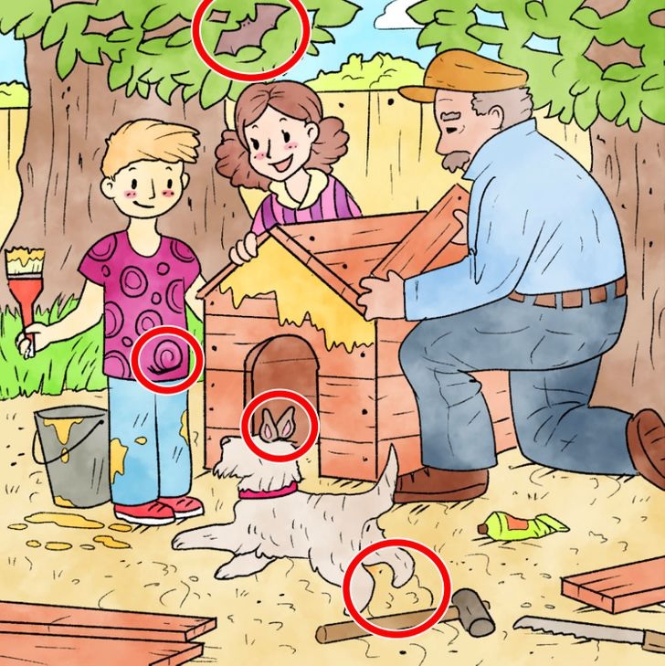 If you think this was hard, wait until you see the next challenge! In this next picture puzzle, you will once again see a hardworking family who is building a dog house for their beloved pooch.