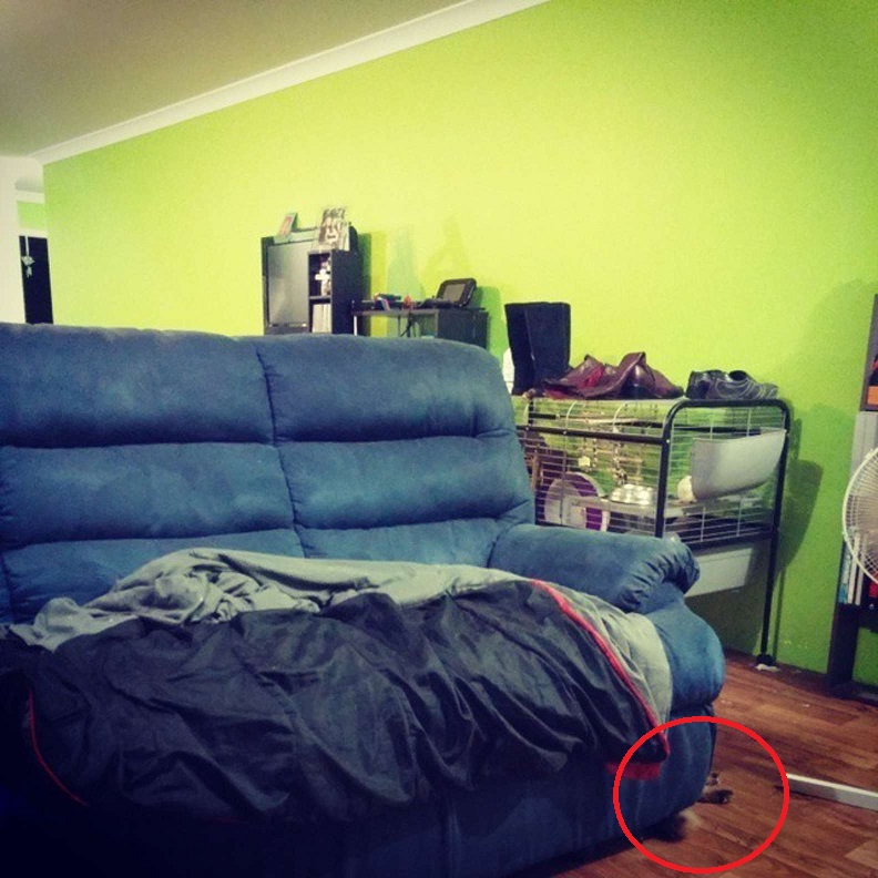 The lazy cat in this picture is not up high like the one before. Instead, it’s resting somewhere on the floor. Did you find it yet?