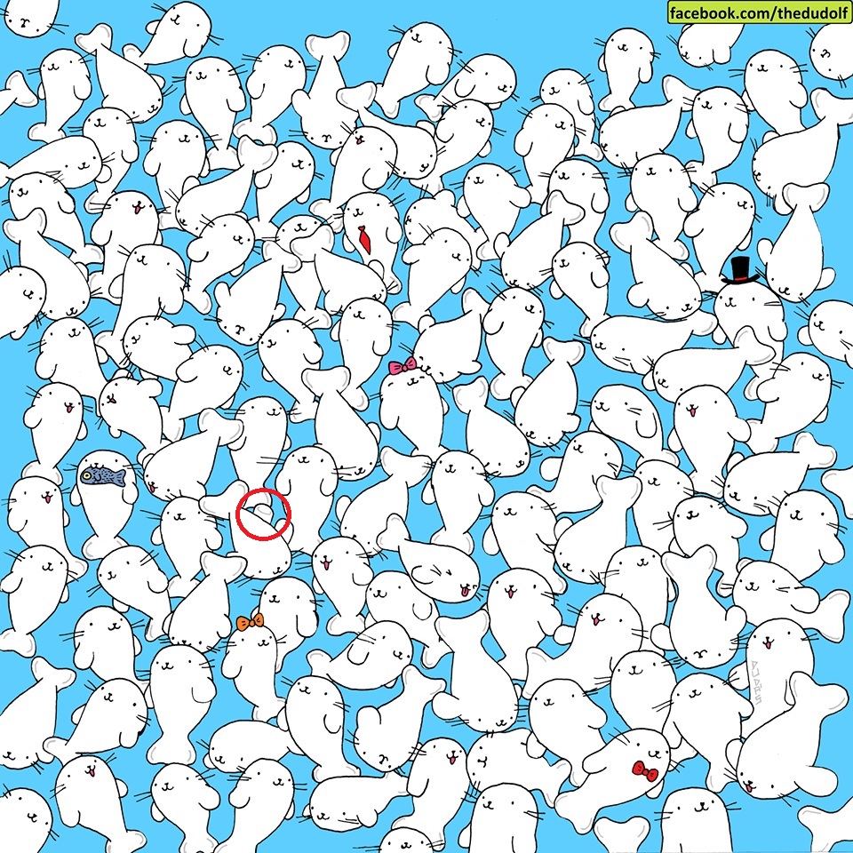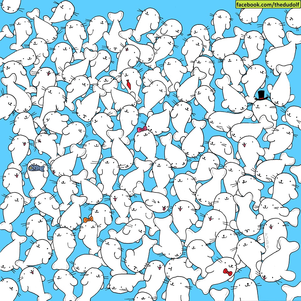 This time, your objective is to take a close look at the picture above and find a marshmallow hiding somewhere among the seals.