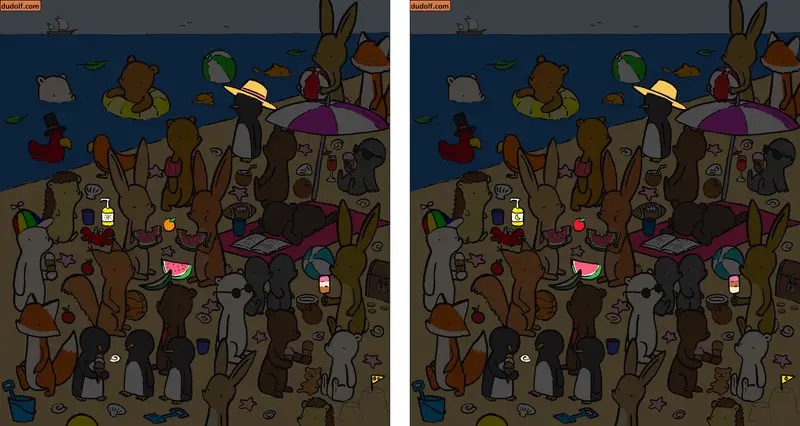 If you liked this challenge, here’s another hide-and-seek puzzle by Dudás. This time, you are required to compare the picture on the left to the picture on the right.