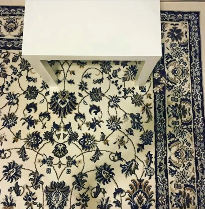 Keep in mind, however, that the phone comes with a flower-patterned phone case that blends in perfectly with the carpet’s intricate design.