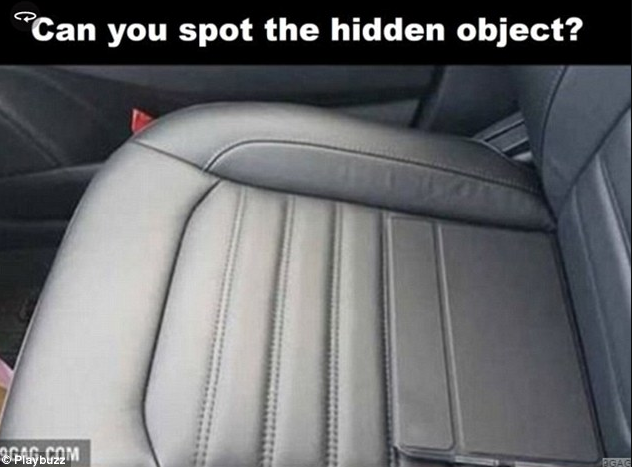 The photo features a grey car seat, but according to its creator, there is a mysterious object hiding in there, and that it’s up for you to discover!
