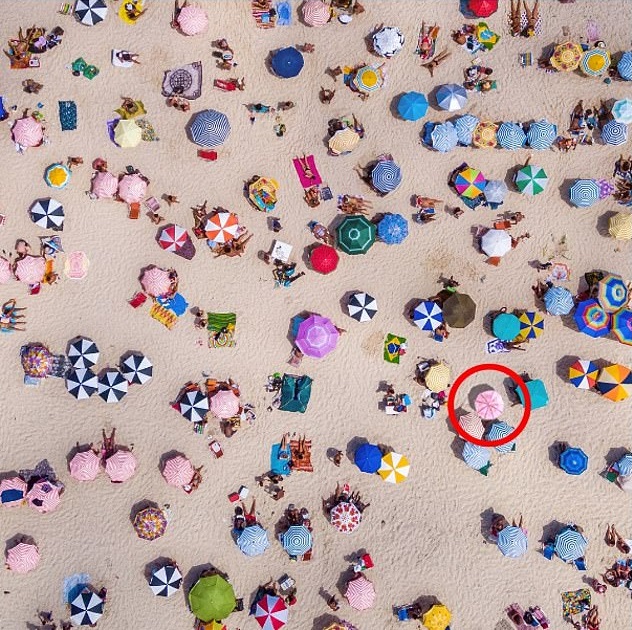 Internet users have been challenged to spot a hidden cocktail umbrella hiding among dozens of beach umbrellas.