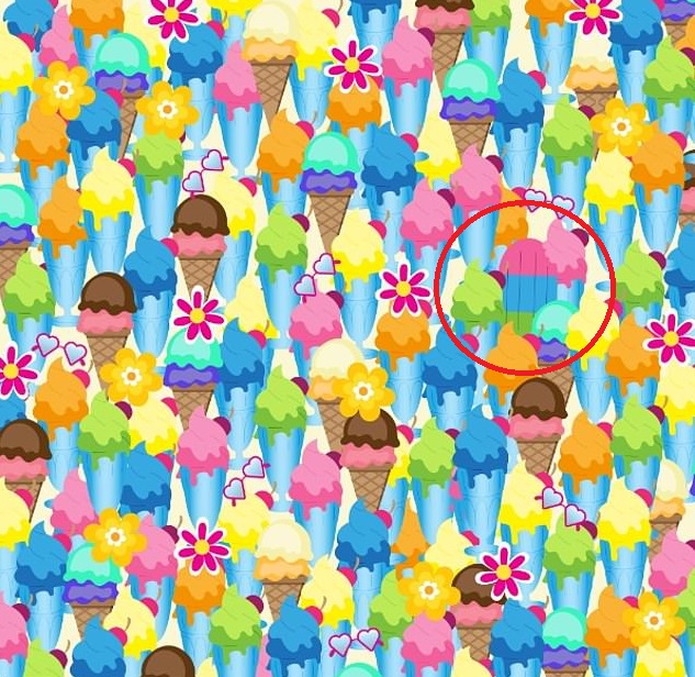 Your job is to inspect the graphic carefully and find the hidden popsicle. Keep in mind that the frozen snack is made of various colors!