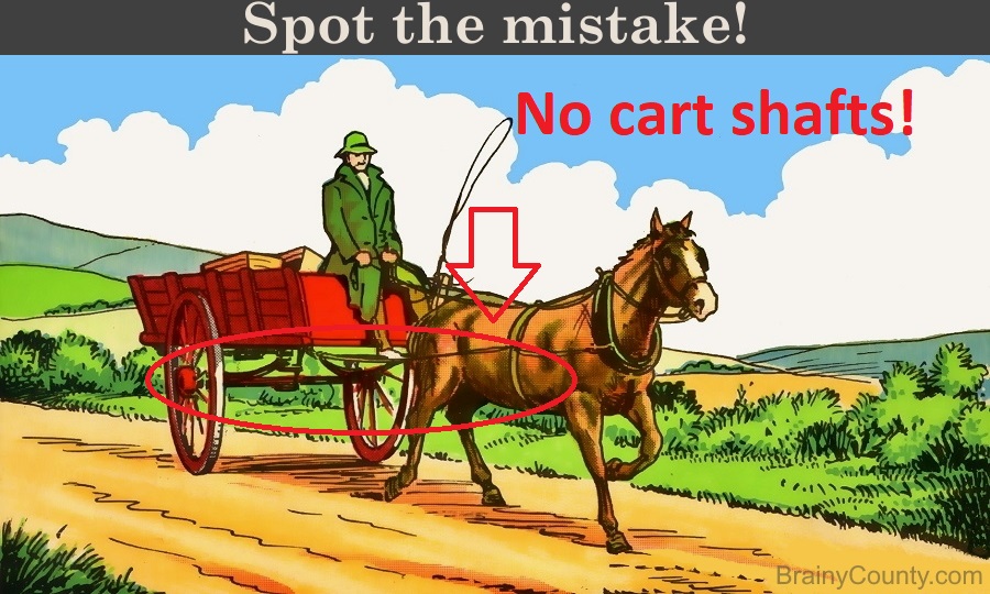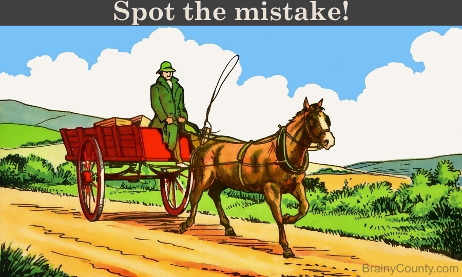 This time, you’re looking at a countryside scene showing a man riding a cart that is being pulled by his horse. But where’s the error, one might wonder.
