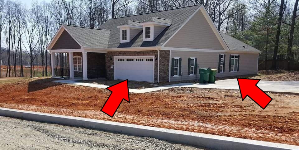 To spot the error, take a close look at the driveway. As you’ll notice, the driveway leads to the side of the house and there is no way to access the garage with a vehicle!