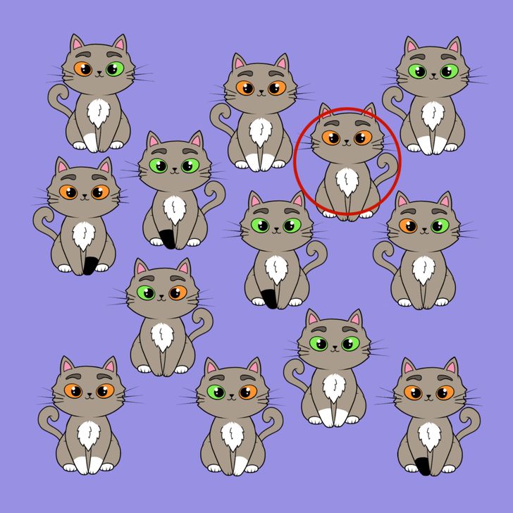 Take another look at the image and see if you can find the odd cat this time or you can scroll down to view the answer.