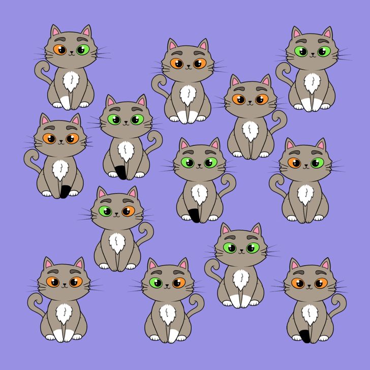 Each cat has a partner but one feline is completely different from the rest! Can you spot the odd one out?