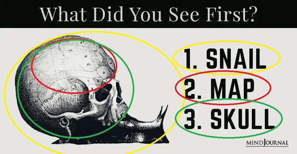 If you spotted the snail first, you are likely a very energetic person who loves traveling, adventure, and new challenges.