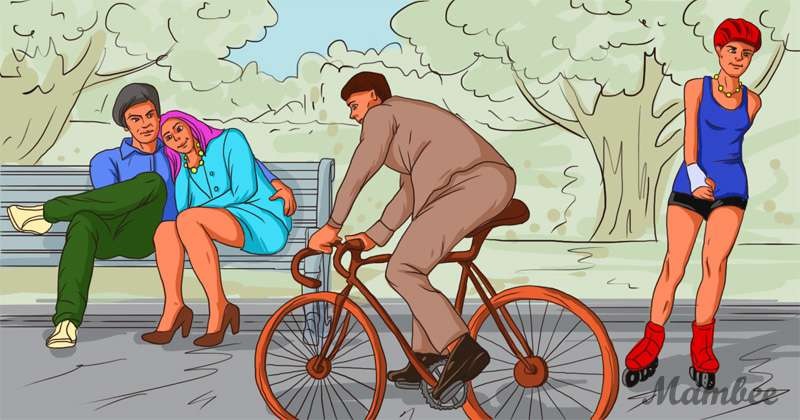 So who’s the real couple then? To spot the lovers, you’ll have to take a closer look at those details. Does the man riding the bike have anything in common with any of the people in the picture?