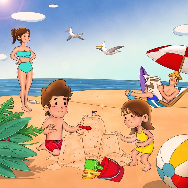 For a mastermind like you, we have another interesting riddle. The following picture shows a happy family having fun at the beach. But, there is something hidden in this picture, and we would be grateful if you could find it. Spot a crab and let us know if you succeeded in finding out the crab in less than a minute.
