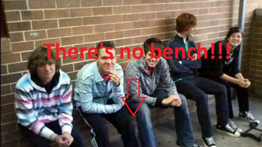 If you haven’t figured it out yet, the boys in the photo are hovering in mid-air and pretending to be sitting on a bench that doesn’t even exist!