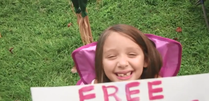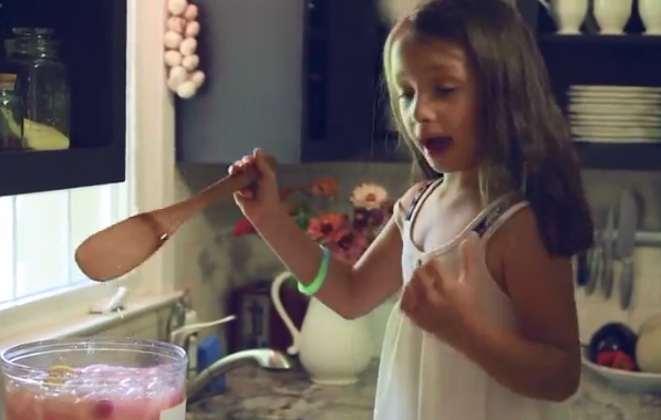 A very cute little girl offers her neighborhood a pink lemonade. It was indeed delicious. The little girl Rusa made up her own stand, signed and mixed up the sweet treat.