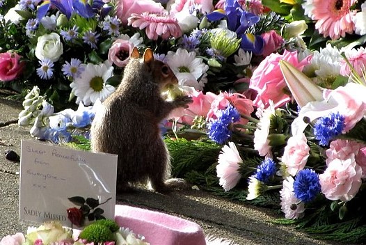 Following the squirrel rampage, mourners and grieving families who attend Earlham Cemetery in Norwich, UK, have been urged to stop bringing sugary flowers to the graves of their loved ones because they attract squirrels.