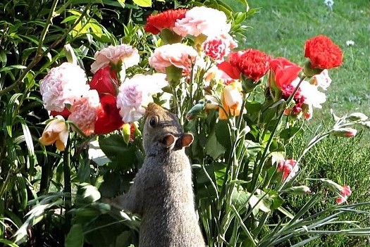 “We have erected signage informing visitors squirrels live in the area and can sometimes eat fresh spray carnations and chrysanthemums due to their high sugar content.