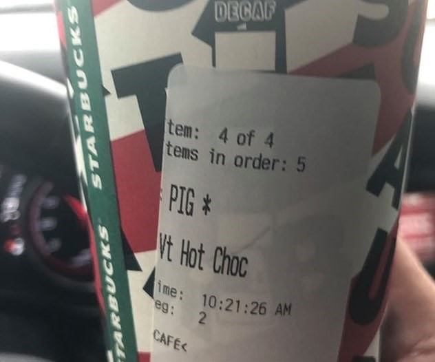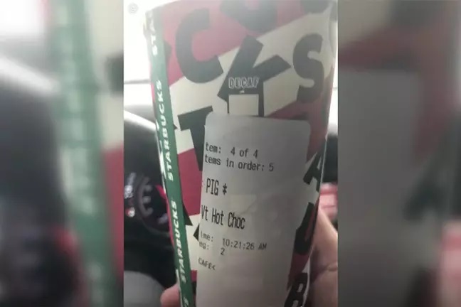 A police officer was enraged after a Starbucks employee called him a “pig” on his coffee order on Thanksgiving Day.
