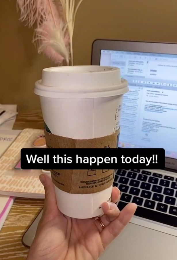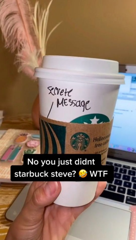 In the video she posted online, she shows the coffee up which has a note ‘SECRETE MESSAGE’ and an arrow pointing down to the bottom where the warning message can be seen.
