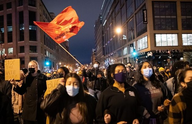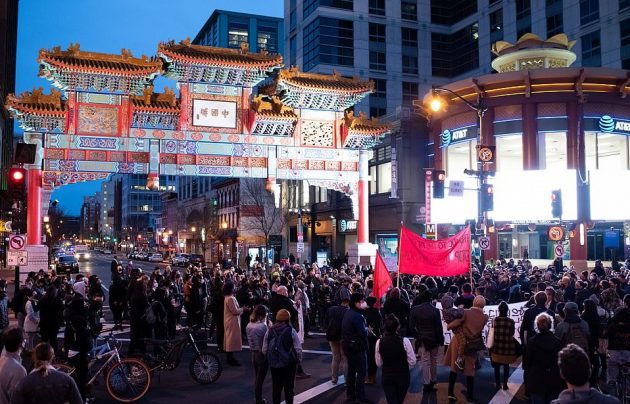 Photos show activists gathered in solidarity with residents in the Chinatown area of DC and Asian American community in Philadelphia on Tuesday night.