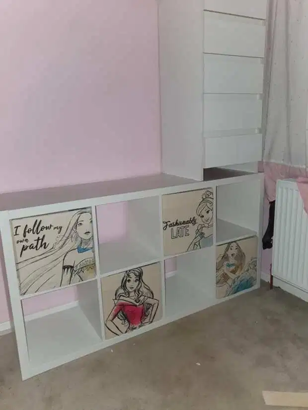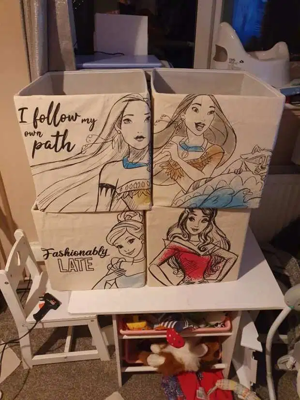 Featuring Cinderella, Sleeping Beauty, and Pocahontas style boxes, the storage units looked as if they came straight out of a Disney movie.