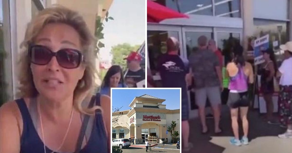 The incident happened in Costa Mesa, California, where a group of anti-maskers gathered outside Mother’s Market & Kitchen to protest after being denied entry to the supermarket due to not wearing face coverings.