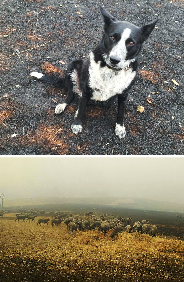 9. A dog saved a flock of sheep and brought them to a safe paddock and her owner battled a fire that was surrounding their farm