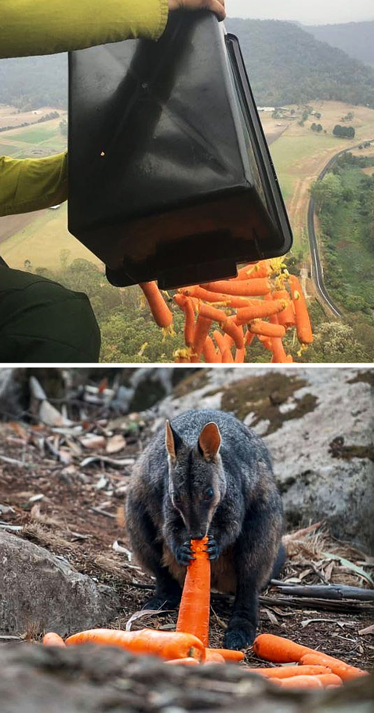 4. Animals who were impacted with the bushfire received tons of vegetables that were dropped from the air