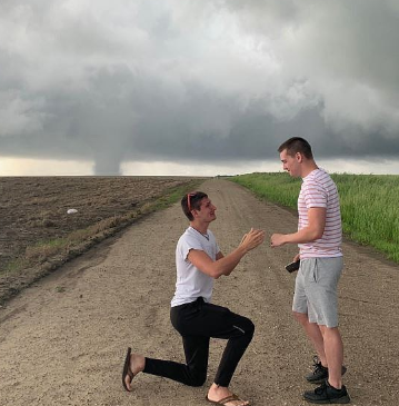 Well, it became the perfect moment for this couple who are both storm chasers and extremely in love with each other.