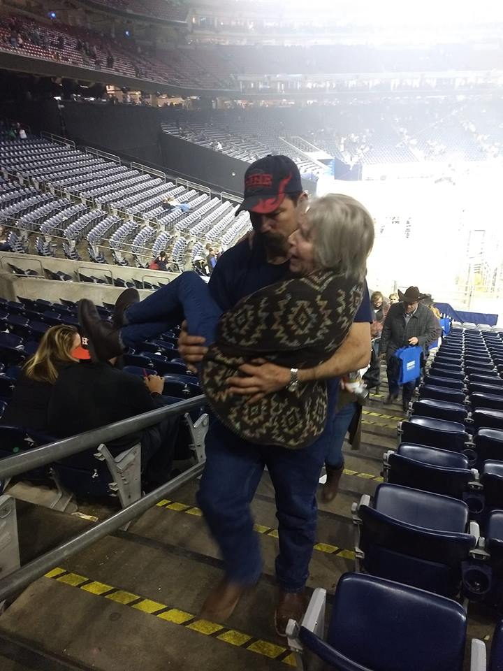 “Y’all I have to brag on my husband big time tonight! He made me Soo proud. As we were sitting in our seats waiting for the rodeo to start I noticed an elderly lady, her grown daughter, and 2 young granddaughters trying to come down the stairs,” she wrote on Facebook.